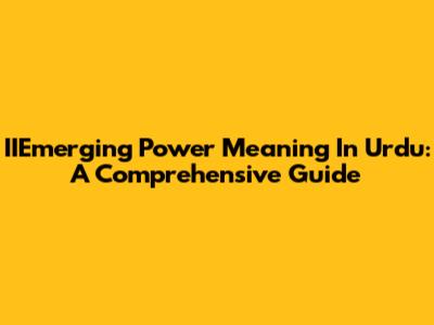 IIEmerging Power Meaning In Urdu: A Comprehensive Guide