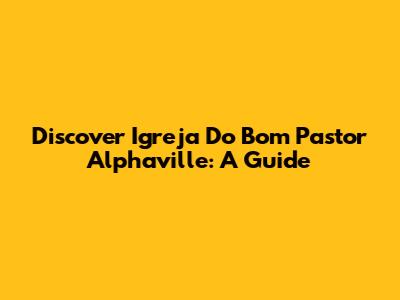 Discover Igreja Do Bom Pastor Alphaville: A Guide