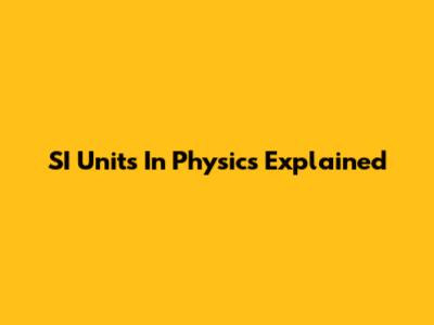SI Units In Physics Explained