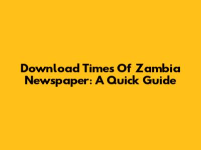 Download Times Of Zambia Newspaper: A Quick Guide