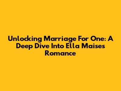 Unlocking 'Marriage For One': A Deep Dive Into Ella Maise's Romance