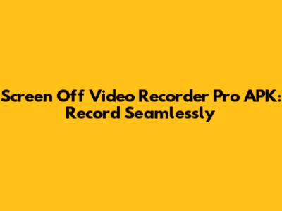 Screen Off Video Recorder Pro APK: Record Seamlessly