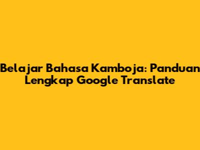Belajar Bahasa Kamboja: Panduan Lengkap Google Translate