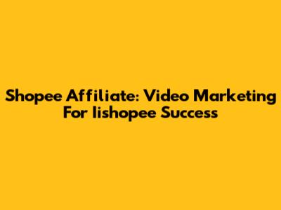 Shopee Affiliate: Video Marketing For Iishopee Success