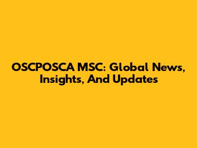 OSCPOSCA MSC: Global News, Insights, And Updates