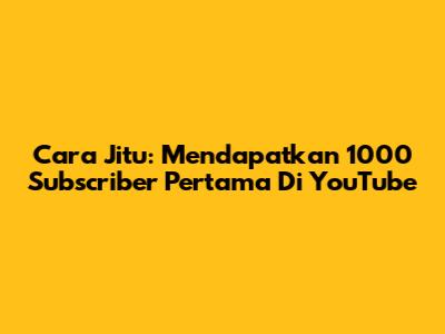 Cara Jitu: Mendapatkan 1000 Subscriber Pertama Di YouTube