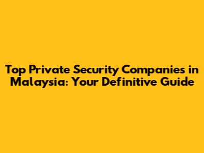 Hey guys! Navigating the world of security can be a real headache, right? Especially when you're looking for top-notch protection in a place like Malaysia. Whether you're a business owner, homeowner, or just someone who values peace of mind, finding the right private security company in Malaysia is super important. That's why I've put together this definitive guide to help you sort through the options and make the best choice for your needs. We're going to dive deep into what makes a great security company, what services they offer, and how to find the perfect fit for your specific situation. Let's get started!