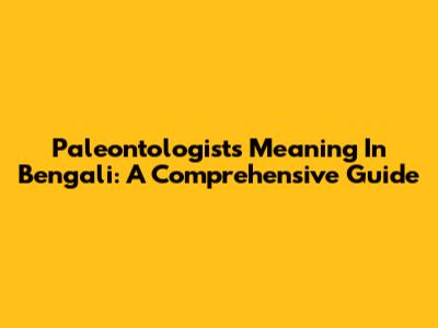 Paleontologists Meaning In Bengali: A Comprehensive Guide