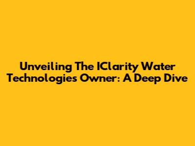 Unveiling The IClarity Water Technologies Owner: A Deep Dive