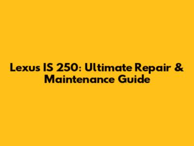 Lexus IS 250: Ultimate Repair & Maintenance Guide