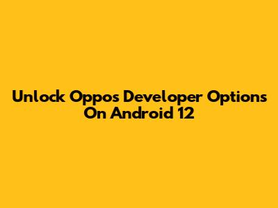 Unlock Oppo's Developer Options On Android 12