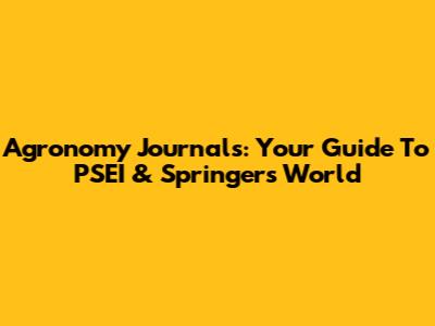 Agronomy Journals: Your Guide To PSEI & Springer's World