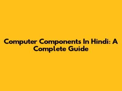Computer Components In Hindi: A Complete Guide