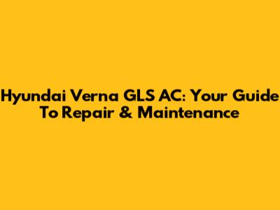 Hyundai Verna GLS AC: Your Guide To Repair & Maintenance