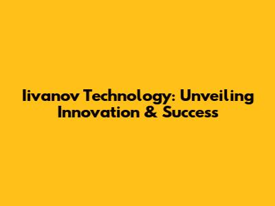 Iivanov Technology: Unveiling Innovation & Success