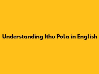 What Does "Ithu Pola" Mean?