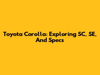 Toyota Corolla: Exploring SC, SE, And Specs