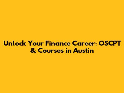 Are you looking to boost your finance career in the vibrant city of Austin? Maybe you're aiming for that coveted OSCPT certification or simply want to enhance your financial skills with targeted courses? Well, you've landed in the right spot! Let's dive into how you can achieve your goals and make a splash in the Austin finance scene.