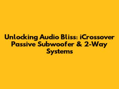 Hey audio enthusiasts! Ever wondered how to truly level up your listening experience? Today, we're diving deep into the world of iCrossover passive subwoofers and 2-way systems. We'll explore what makes them tick, how they work together to create sonic masterpieces, and why they're a fantastic choice for anyone looking to seriously upgrade their sound. So, buckle up, grab your favorite headphones (or speakers!), and let's get started!
