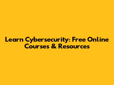 Learn Cybersecurity: Free Online Courses & Resources