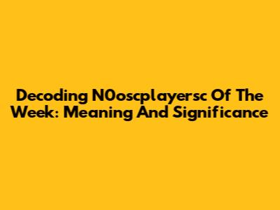 Decoding N0oscplayersc Of The Week: Meaning And Significance