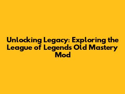 Hey guys, have you ever felt a pang of nostalgia for the old League of Legends? Those simpler times, when the game felt a bit different, the meta was wilder, and your mastery scores meant something... something tangible. If you're nodding along, then you're probably going to be pretty stoked to learn about the League of Legends Old Mastery Mod! This is your golden ticket back to a classic LoL experience, a way to relive those epic moments and feel the power of the old mastery system once again. We're talking about bringing back those nostalgic features and the thrill of leveling up your favorite champions in a familiar, yet strangely new way. Get ready to dive deep into a world of mods, where the past meets the present, and where your love for League of Legends is rekindled! It's like finding an old photo album and remembering all the good times. This article is your ultimate guide, your roadmap, to understanding and enjoying the Old Mastery Mod. Ready? Let's jump in!