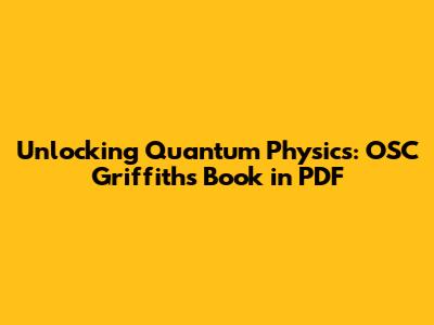 Delving into the realm of quantum physics can feel like stepping into another world, one governed by rules that often defy our everyday intuition. For students, researchers, and enthusiasts alike, having access to comprehensive and accessible resources is paramount. OSC Griffiths's quantum book has emerged as a valuable asset in this field, offering insights and explanations that can illuminate even the most complex concepts. In this article, we will explore the significance of this book, its key features, and how you can access it in PDF format to enhance your understanding of quantum mechanics.