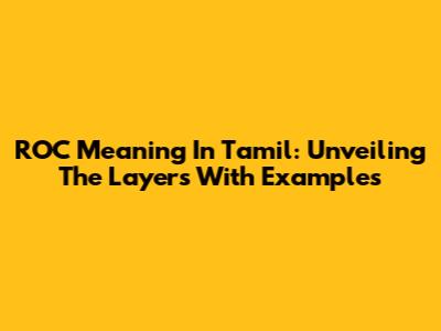 ROC Meaning In Tamil: Unveiling The Layers With Examples