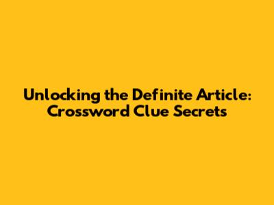 Understanding the Definite Article: The Foundation of Your Crossword Success