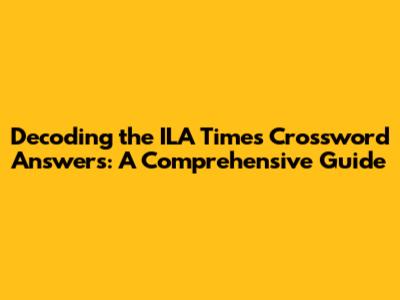 Alright, let's get down to business and talk about the ILA Times Crossword answers! This section is for the specific puzzle you mentioned. Please note that I do not have access to real-time information, including specific crossword answers. However, I can provide you with general tips on how to find the ILA Times Crossword answers!