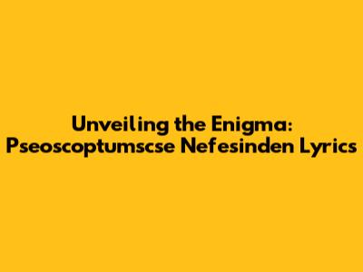 Now, before we jump into the lyrics themselves, let's acknowledge the elephant in the room: the title. "Pseoscoptumscse Nefesinden" is not your everyday phrase, is it? It's likely a constructed word or phrase, and its meaning could be key to understanding the song's overall theme. Think about it: what kind of vibe does it give off? Is it dark and mysterious, or whimsical and playful? The title often sets the tone, so we'll keep it in mind as we analyze the individual lines. Keep in mind that we're dealing with art, and art is subjective. Therefore, feel free to add your own views.