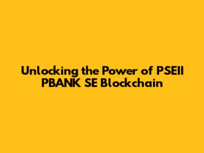 What Exactly is PSEII PBANK SE Blockchain?