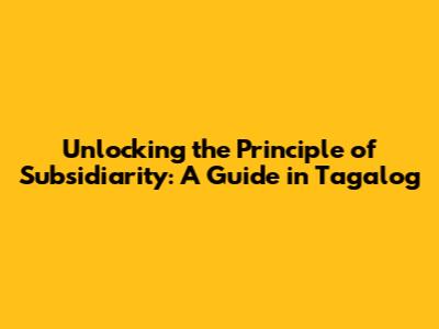 Ano ba ang Prinsipyo ng Subsidiarity? (What is the Principle of Subsidiarity?)