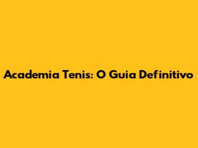 Academia Tenis: O Guia Definitivo