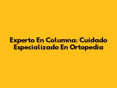 Experto En Columna: Cuidado Especializado En Ortopedia