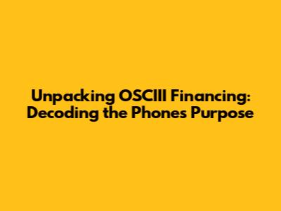 Hey guys, let's dive into something that can seem a little cryptic at first glance: OSCIII financing and what it means for your phone. It's a term you might stumble upon when you're looking at financing options for a new device, or perhaps when you're checking your billing statements. In this article, we'll break down everything, from the basics to the nitty-gritty details, to make sure you're totally in the loop. We'll explore what OSCIII financing actually is, how it works in the context of your phone, and why it's something you should know about. We'll also unpack the meaning of the phone itself within this financial framework, answering those burning questions about its role in the process. Understanding OSCIII financing is crucial to making informed decisions about how you purchase and manage your phone, and it can also help you avoid any unexpected surprises down the road. So, whether you're a tech enthusiast, a budget-conscious consumer, or just someone curious about the financial side of your mobile world, this guide is for you. Let's get started, shall we?