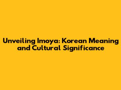 Hey there, language enthusiasts and culture buffs! Ever stumbled upon a Korean word and found yourself scratching your head, wondering what it truly means? Well, if you've come across 'imoya', you're in for a treat! This article is your friendly guide to unpacking the 'imoya' korean meaning in english, diving into its nuances, and exploring its cultural weight. So, buckle up, because we're about to embark on a linguistic adventure that'll leave you with a richer understanding of the Korean language and the beautiful culture it represents. Let's get started, shall we?