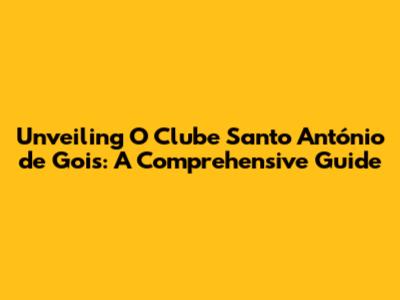 Hey guys! Ever heard of O Clube Santo António de Gois? If not, you're in for a treat! This article is your ultimate guide to everything you need to know about this fantastic club. We'll dive deep into its history, explore its activities, and uncover why it's such a beloved institution. Get ready to learn all about the heart and soul of Gois!