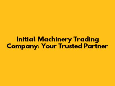 Initial Machinery Trading Company: Your Trusted Partner