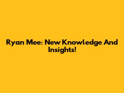 Ryan Mee: New Knowledge And Insights!