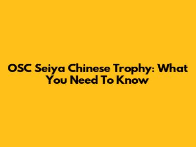 OSC Seiya Chinese Trophy: What You Need To Know