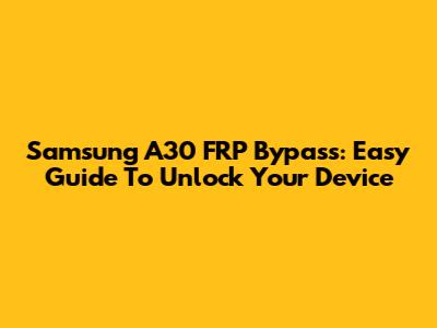 Samsung A30 FRP Bypass: Easy Guide To Unlock Your Device