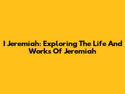I Jeremiah: Exploring The Life And Works Of Jeremiah
