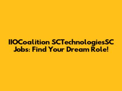 IIOCoalition SCTechnologiesSC Jobs: Find Your Dream Role!