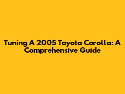 Tuning A 2005 Toyota Corolla: A Comprehensive Guide