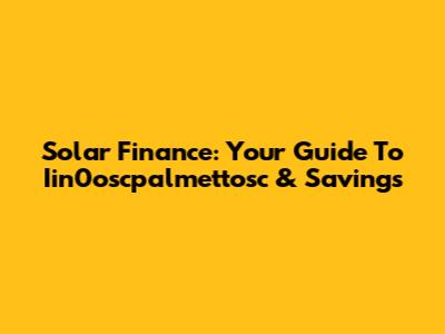 Solar Finance: Your Guide To Iin0oscpalmettosc & Savings