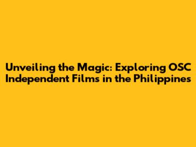 Hey film buffs, have you ever heard of the OSC Independent Films in the Philippines? If not, you're in for a treat! The Filipino film industry is a treasure trove of creativity, storytelling, and cultural richness. Within this vibrant landscape, independent cinema shines brightly, offering fresh perspectives and unique narratives. This article will dive deep into the world of OSC (presumably referring to a film production company or a similar entity) independent films in the Philippines, exploring their significance, impact, and the filmmakers who are shaping this exciting movement. Grab your popcorn, settle in, and let's get started!