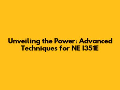 Hey everyone, let's dive into the fascinating world of NE I351E and explore the advanced techniques that can really make this powerful tool shine! Whether you're a seasoned pro or just getting started, understanding these methods can seriously level up your game. We'll be breaking down some key strategies, tips, and tricks to help you get the most out of NE I351E. Ready to become a master? Let's get started!