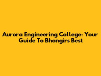 Aurora Engineering College: Your Guide To Bhongir's Best