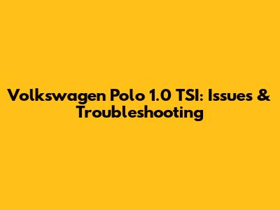 Volkswagen Polo 1.0 TSI: Issues & Troubleshooting